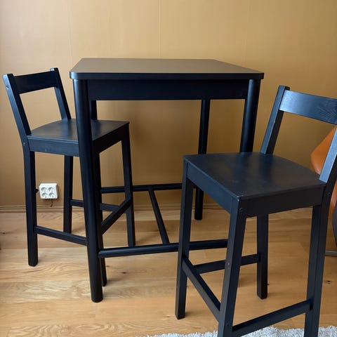Säljer ett fint barbord med 4 stolar till. Allt köpt på VidaXl. Nypriset på bordet är 2500 och jag hittade inte exakta modellen på stolarna men liknande kostar ca 750 per styck. Mitt pris för allt är 1000kr. Finns att hämta i Valdemarsvik och kan skjutsas ut mot extrapeng.