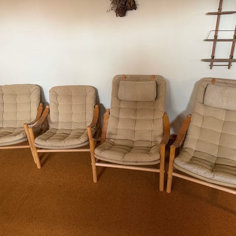 DUX Bruno Mathsson ”Ingrid” fåtöljer röd klädsel trästomme