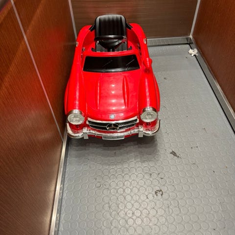 Säljer en rolig elektrisk barnbil med laddningskabel.