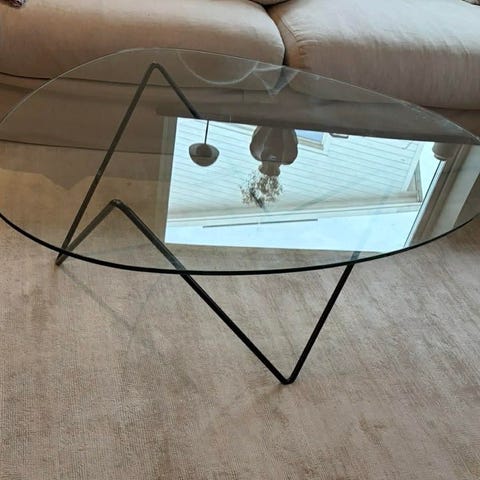 Man köper alltså detta bord om man kan se potential i bordet och vill använda det som en ny design, eller om du händig och kan laga skivan, eller om du bara vill ha det snygga underredet till en annan skiva.