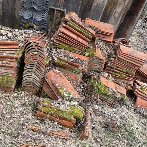 Enkupigt gammalt taktegel från Heby Tegelverk ca1500st, även nockpannor finns.