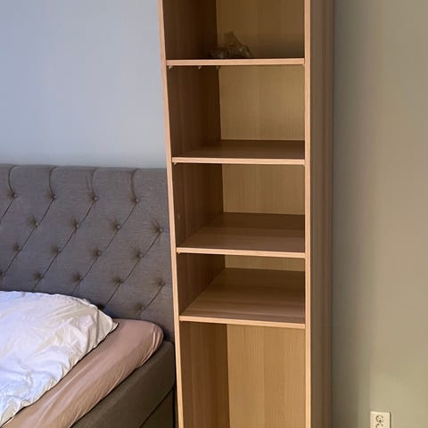 Säljer en Pax i gott skick. Två trälådor i botten och 5st hyllor (en inte med på bilden) alternativt om man inte vill ha hyllor hela vägen så finns också en klädstång för hängande kläder som går att montera.