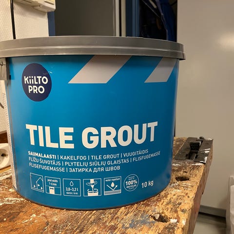 Vi har kvar ett halvt paket vitt metro kakel samt materialen (fix och silikon). Oanvänt – ett paket är fortfarande oöppnat, det andra är öppnat och ungefär hälften återstår.