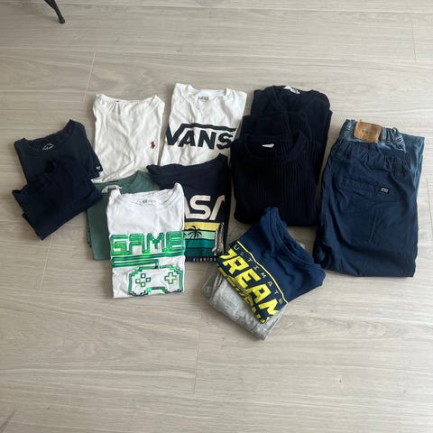 Klädpaket kille i storlek 146/152 som innehåller kläder från Vans, Puma, Cubus, Lager 157, HM.