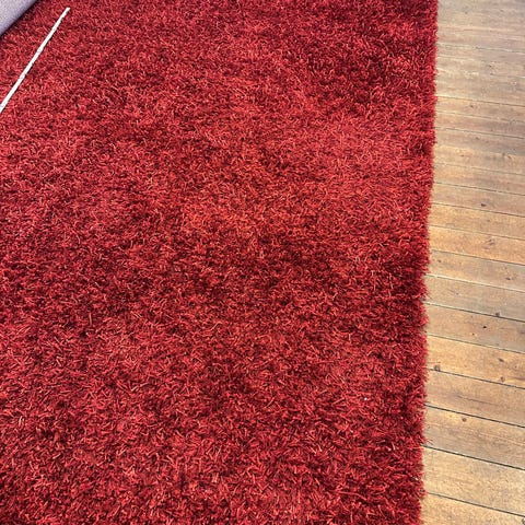 IKEA Ådum matta i röd färg. Mått 133x195 cm enligt etikett. Rektangulär modell som passar exempelvis vardagsrum, sovrum eller hall. Mattan har tät lugg som ger en mjuk yta att gå på.
