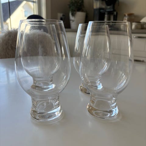 Vintage-set med två glas med fot och ett graverat blommönster. Rymmer cirka 200–250 ml vätska