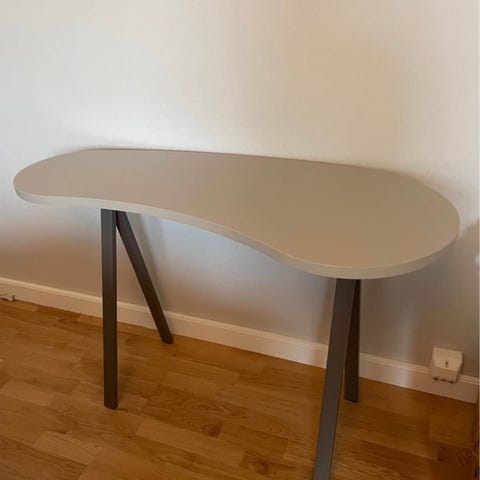 Säljer ett stilrent skrivbord med unik form. Perfekt som arbetsbord eller datorbord.