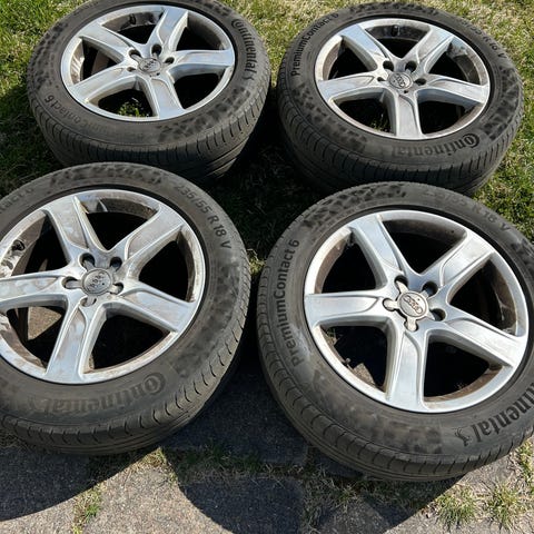 Mercedes-Benz fälgar med 5-ekrad design i silverfärg. Passar personbil från samma märke med motsvarande bultmönster och dimensioner som på bilderna. Fälgarna är i metall (legering) och levereras monterade med däck enligt foton. Lämpliga som sommar- eller vardagshjul beroende på däcktyp och mönsterdjup som köparen själv kontrollerar vid köp. Oklart hur däcken är fälgarna är fina. Kostade 21000 kr år 22