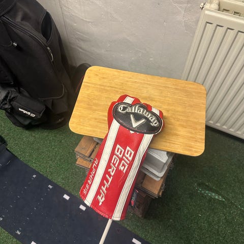 Callaway Big Bertha Diablo driver med 11° loft för högerspelare. Klubban har metallhuvud med röd och svart design och levereras med original headcover med Big Bertha Diablo-logga. Skaftet är grafit med matchande färger och standardgrepp. Passar för golfspelare som söker en driver med denna specifika loftvinkel och modellserie från Callaway.