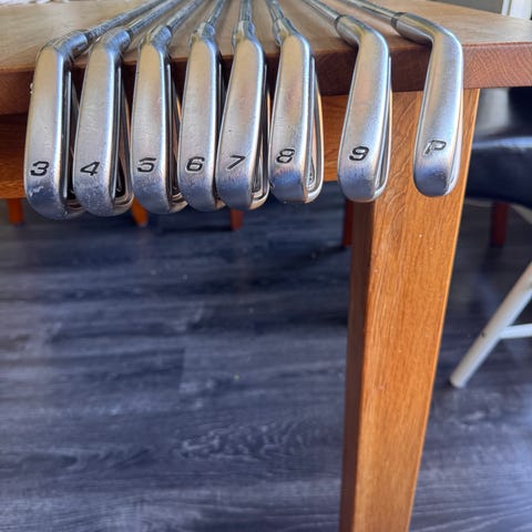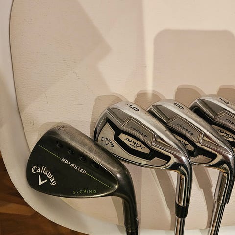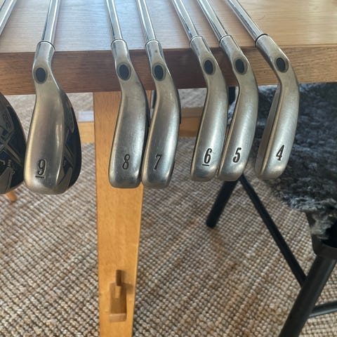 Callaway hot 2X järnset golfklubbor med stålshaft. Setet består av flera järnklubbor, inklusive pitching wedge och numrerade järn. Klubborna har grepp i svart gummi och klubbhuvuden i metall med svart detaljpanel. 4-P , skaftet är regular. Väldigt fint skick