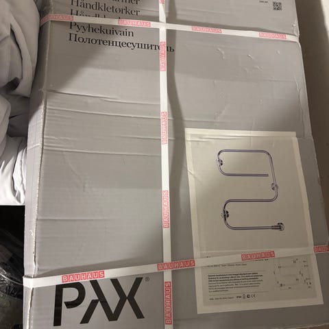 Badrumsprojektet blir inte av. Säljer ouppackad handdukstork. Med timerfunktion. Inköpt på Bauhaus.