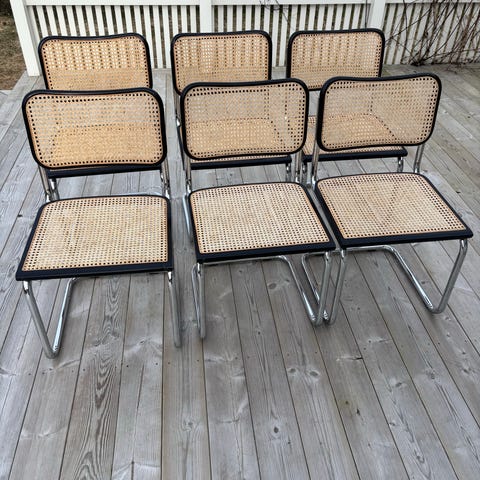 Fint skick. Lite repor på ramarna men alla rottingsitsar är hela. Medföljer 3 st extrasitsar