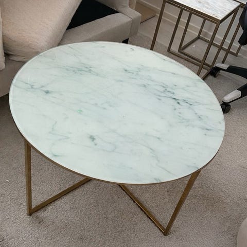 Fint soffbord med brun marmor och underrede i mässing.