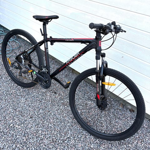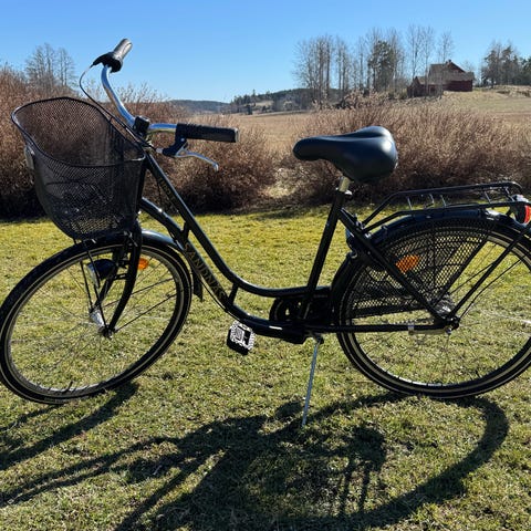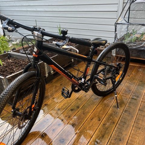 Sparsamt använd, stått ute över vintern men under tak. Behöver nog smörjas upp lite men är i fint skick då sonen hellre åker elkick (tyvärr.) Cykeln är köpt på Jula där ordinarie pris ligger på ca 2200:- omonterad, vi har köpt till stänkskydd också.