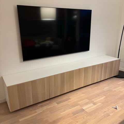 Går att hänga upp på väggen. Finns en träskiva som man lägger ovanför.