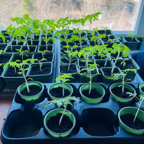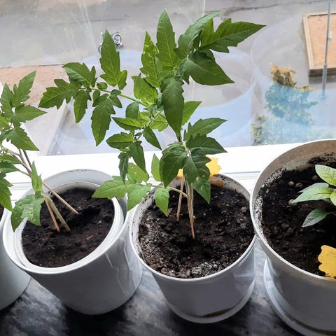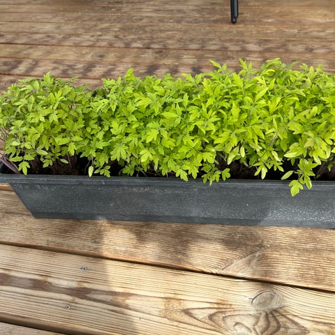 Kruktomater av sorten Aztek, vilket blir gula körsbärstomater. Har alltid fått många tomater på dessa, oavsett om du planterar dem i växthus, på friland eller i en kruka i fönstret.