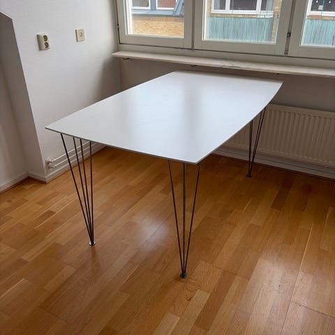 Acky Matbord. Vit skiva i laminat, ben i lackerad massiv ek.