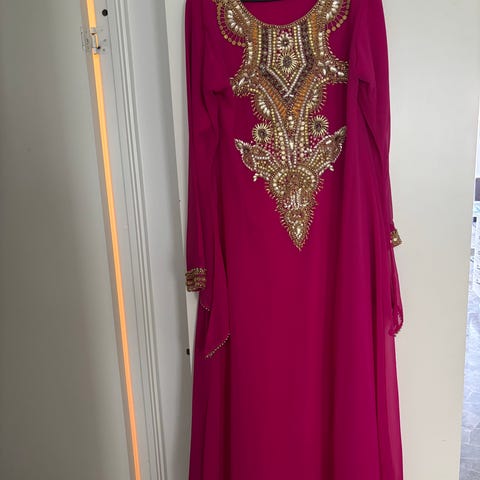 Klänning med blommigt mönster i rosa, blått och grönt. Klänningen har tunna axelband och en omlottdesign upptill. Kjoldelen är lång med ett kortare underfoder och en slits framtill som skapar ett flytande intryck. Framsidan är kort och baksidan är lång tyll. Perfekt för olika tillfällen och varma sommarkvällar. Storleken är universell (den passar S och M, men med mindre byst eftersom den har förstyvade kupor)