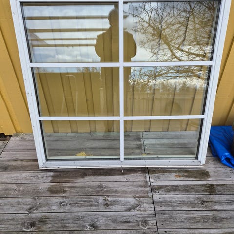Fönster är i väldigt gott skick, men har en spricka i nedre högra hörnet, som dock går att fixa till och måla över.