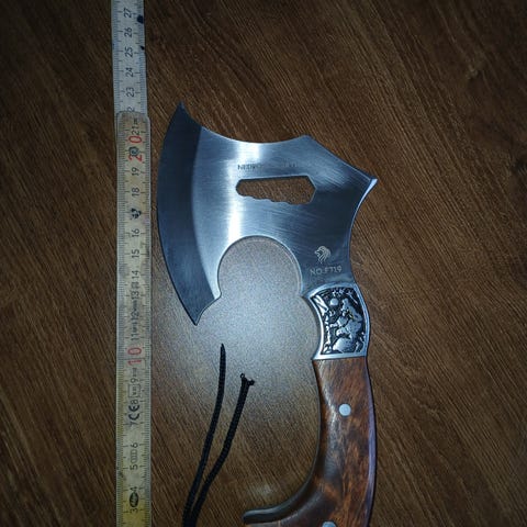Något var fäst vid öglan på yxan -vad?