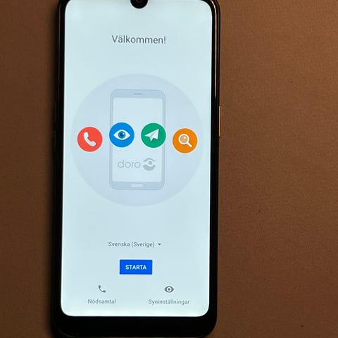 Samsung Galaxy A-series mobiltelefon med 256 GB internminne. Pekskärm med hål för frontkamera i mitten upptill. Enheten visas påslagen på bilderna. Skärmen har synliga sprickor upptill. Men fungerar som den ska och inte mkt använd finns i Skogås