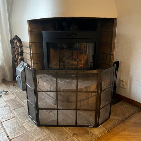 Gnistskydd av plåt till kamin