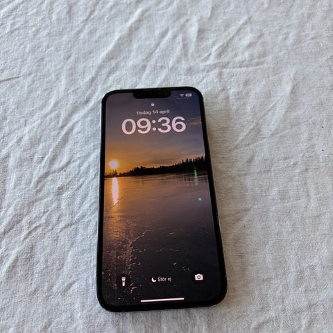 iPhone 13 med 128 GB med en batterihälsa på 86 procent. Funderar felfritt och har inga repor eller sprickor på fram eller baksida men har något märke på kanterna (se bild) syns ej med skal.