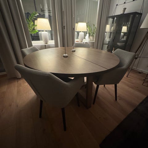 säljer min matgrupp med fyra stolar. Allt är i nyskick, säljer pga flytt.