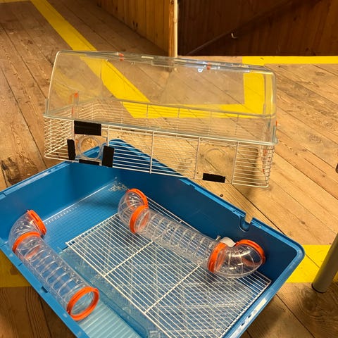 Animal smådjursbur i rosa plast med vit metallgaller. Buren är avsedd för mindre gnagare eller andra smådjur. I buren ingår flera tillbehör, bland annat löphjul, hängande tygkorg, vattenflaska, matskål, hus i trä, klätter- och gömställen i trä samt plasttillbehör. Passar för inomhusbruk.