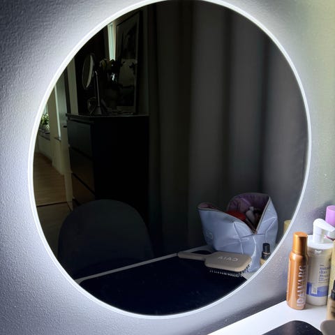Lyfco runt spegel med diameter cirka 60 cm (600 x 600 mm). Spegeln har rund form och är avsedd för väggmontering inomhus. Baksidan är utrustad med fästen för upphängning samt anslutningskabel till elenhet, vilket tyder på inbyggd funktion som kräver ström (till exempel belysning eller liknande). Passar i badrum, hall eller andra rum där en rund väggspegel önskas.