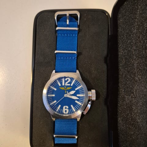 Fint skick, enda anmärkningen är dagvisaren som är lite skev, se bild.