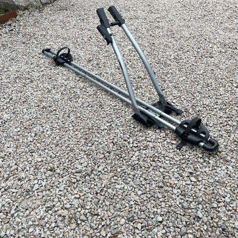 2 st Thule cykelhållare monterat på thule takräcke. Suttit på volvo xc60 årsmodell 2023 så passar många olika bilar