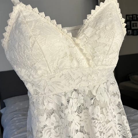 Klänningen är endast provad av mig, och den är jättefin! Jag säljer den endast för att jag hittat en annan klänning som kändes helt 100!