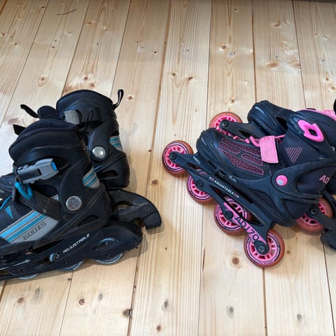 Barn rullskridskor och inlines i storlek 31/33. Ett par kostar 400 kr. Eller köp båda för 700 kr.