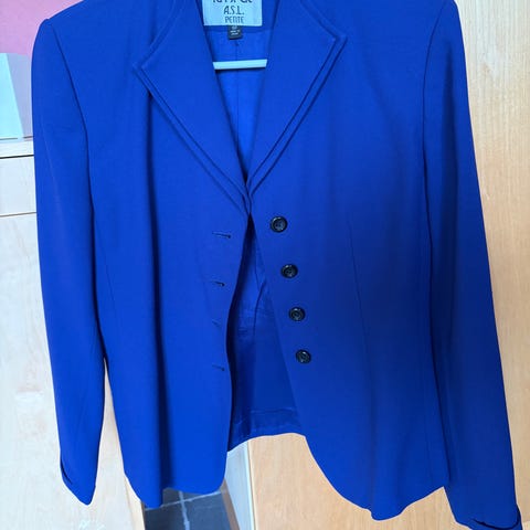Banana Republic kavaj för dam i storlek S. Färgen är grå och yttertyget är i ullblandning enligt materiallappen. Klassisk modell med slag, två knappar framtill. Helfodrad insida i ljus, slät textil. Passar som kavaj till arbete, vardag eller mer formella tillfällen.