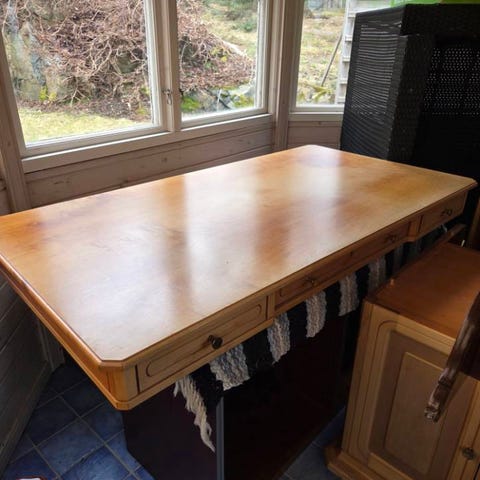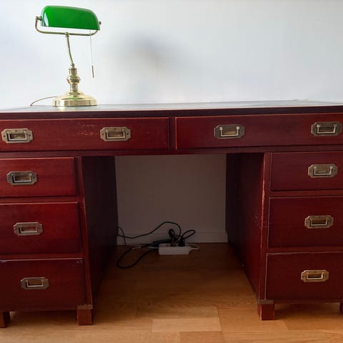 Skrivbord engelsk stil med röd läderskiva i Täby
