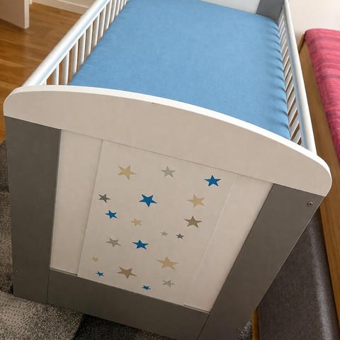 Säljer en spjälsäng i utmärkt skick. Botten på sängen kan ställas in i tre olika höjdlägen och ena långsidan är sänkbar.