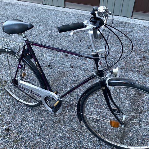 Fin herrcykel i bra skick. Utrustad med korg, fram och bakljus samt baklås. Kedjelås medföljer. Allt fungerar som det ska och däcken är nyligen bytta. Perfekt för pendling eller vardagsbruk. Med 3 växlar.