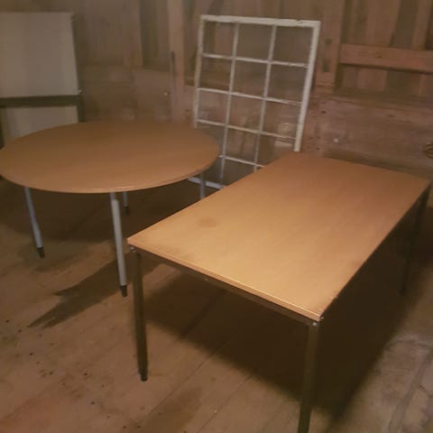 Använt skick. På det större bordet är mekanismen för att lossa benen trasig. Kan säkert fixas lätt av den händige. Hämtas i Sågmyra.