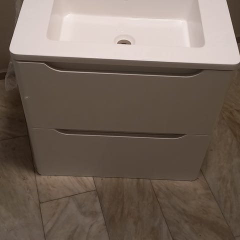 Badrumskommod med tvättställ och spegelskåp vit. Nytt.