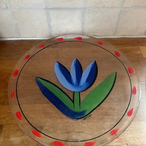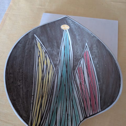 Säljer ett fint vintage karottunderlägg från Laholms Keramik, sannolikt formgivet under 1950- eller 1960-talet. Ett stilrent och tidstypiskt föremål som passar perfekt för dig som gillar retro eller vill ha en unik detalj i köket.