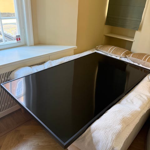 Vi har haft en 55” Samsung The Frame fäst på den.