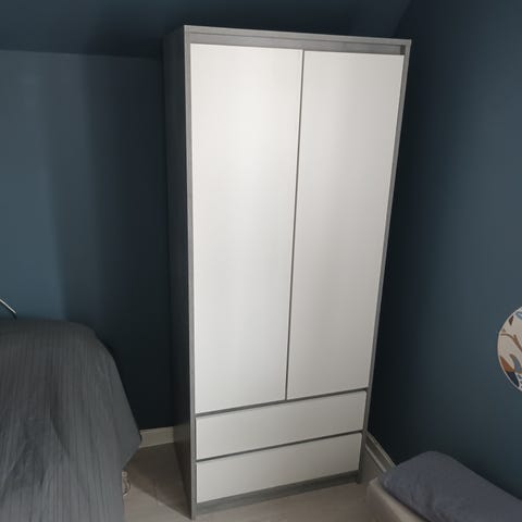 Garderob som blev över efter flytt. Den har nån skavank och är inte ny, men den är fullt fungerande.