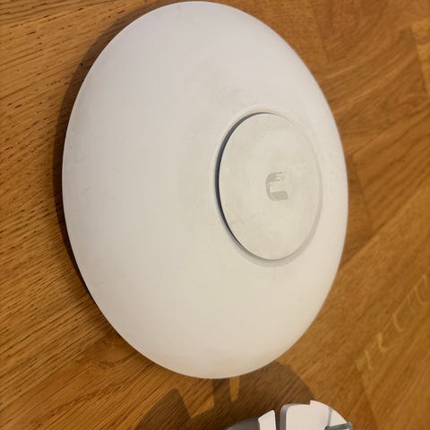 2 st Ubiquiti UniFi AP accesspunkt i vit färg. Trådlös accesspunkt för nätverk, avsedd för montering i tak eller på vägg. Pris 300 kr för båda två.