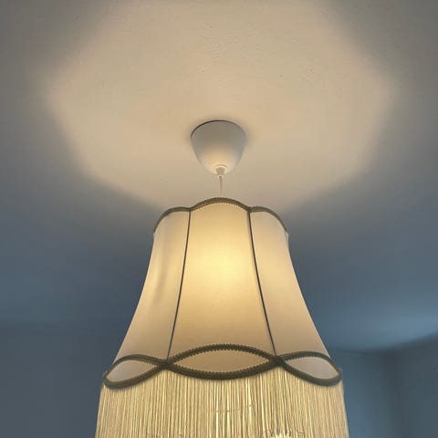 Säljer denna fina lampa i bohemisk bambustil. Lyser upp väldigt fint över taket. Inköpt för 3 år sedan.
