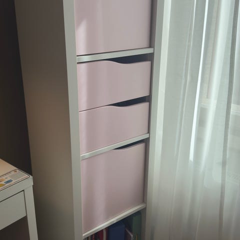 IKEA Kallax hylla i rosa färg.