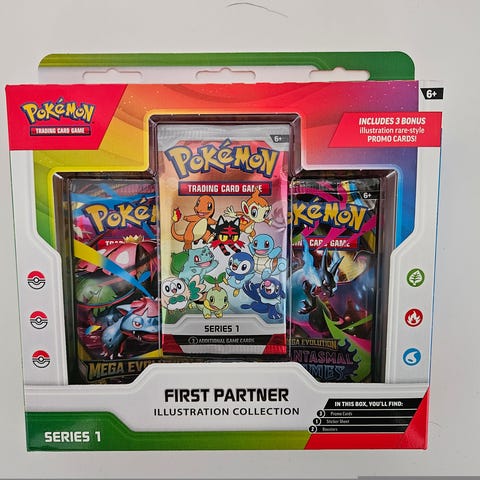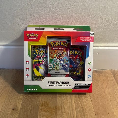 Pokémon Premium Poster Collection Mega Gardevoir samlarlåda. Innehåller flera Pokémon TCG-boosters, en stor affisch med Gardevoir-motiv samt kort och tillbehör kopplade till Mega Gardevoir. Lämplig för samlare och spelare av Pokémon Trading Card Game.