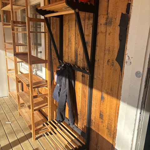 Säljer vår snygga klädhängare/ hatthylla/ skoställ i äkta ek. Den är väldigt snygg och stilren.
