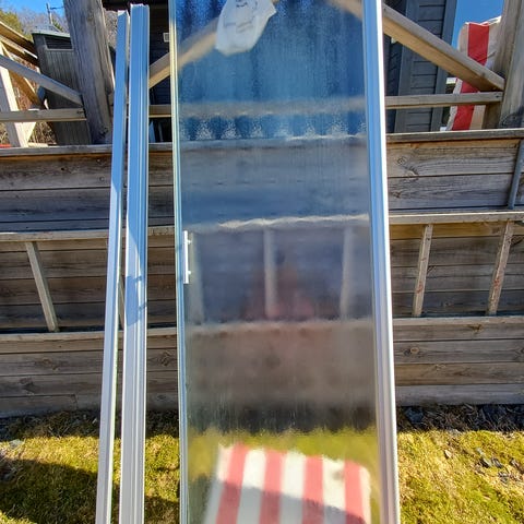 Bastudörr med karm.