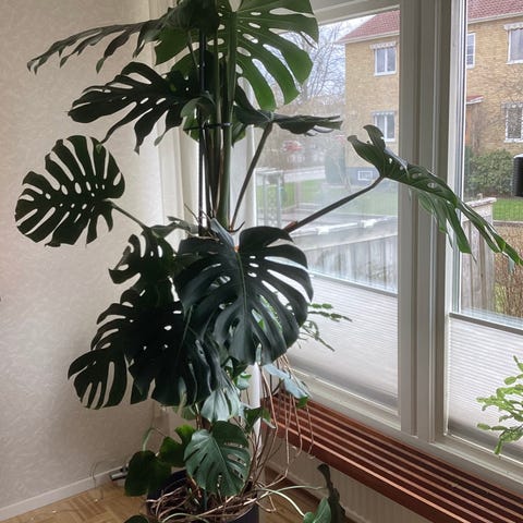Säljer en stor och fin Monstera deliciosa! Den har stora, vackert flikiga blad och är uppbunden, vilket ger den ett fint, klättrande uttryck.